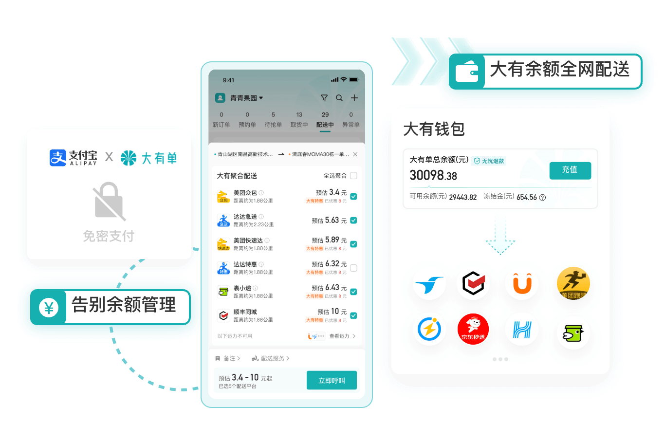 充值大有单即可呼叫全网骑士。开通免密支付,告别余额管理烦恼